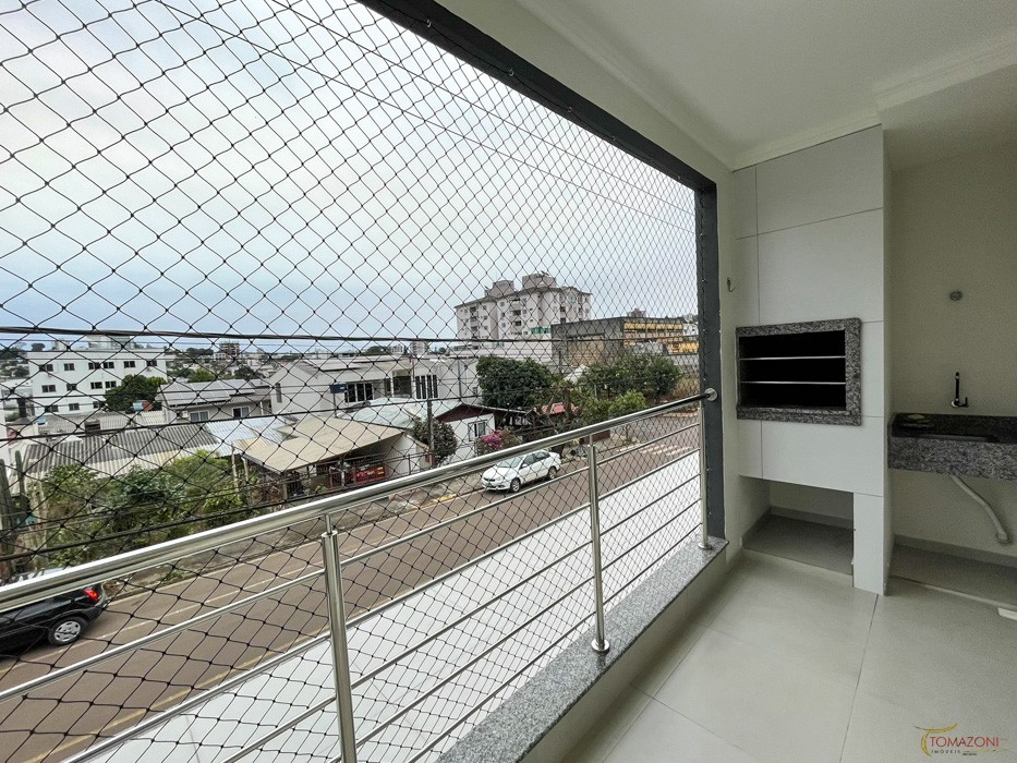 Sacada contendo churrasqueira e rede de proteção;