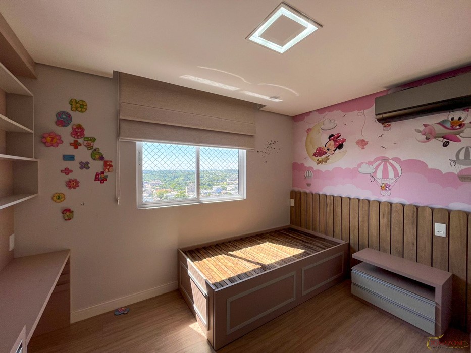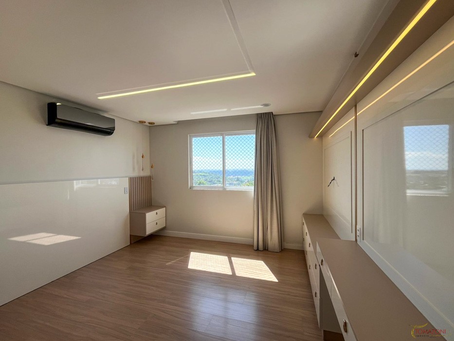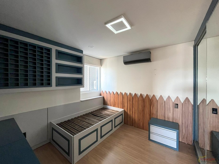 - Painel em MDF amadeirado com porta de correr separando o ambiente;